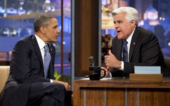 O presidente Barack Obama e Jay Leno no programa de despedida do apresentador